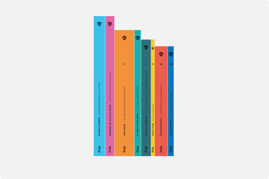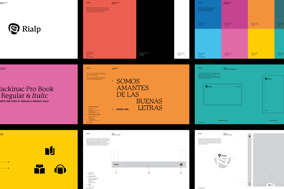 Rialp is a Spanish publishing house, its catalogue focusing mainly on poetry, religion and non-fiction. In 150UP, I worked on Rialp’s rebranding, by setting the main rules of the brand identity system, creating the new brand guidelines and identity implementation – setting a new palette with vivid and bright colours and revisiting the book covers and typography.