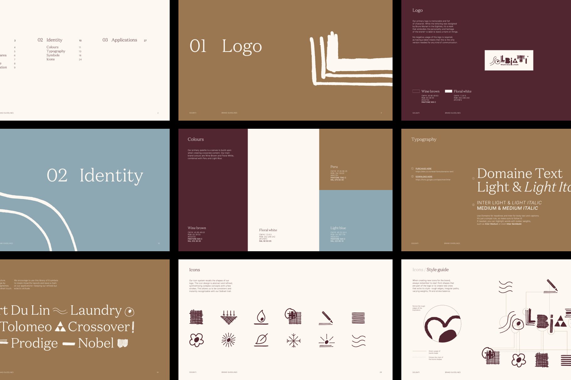 In 150UP I had the pleasure to work on a brand new identity for Solbiati, a historical linen company that has always pushed the boundaries of creativity, now part of Loro Piana. Building on the legacy of Bruno Munari's legendary logo, the new identity is eclectic, playful and refined, where the logo symbols became a vital part of the brand language in forging the brand's legacy.